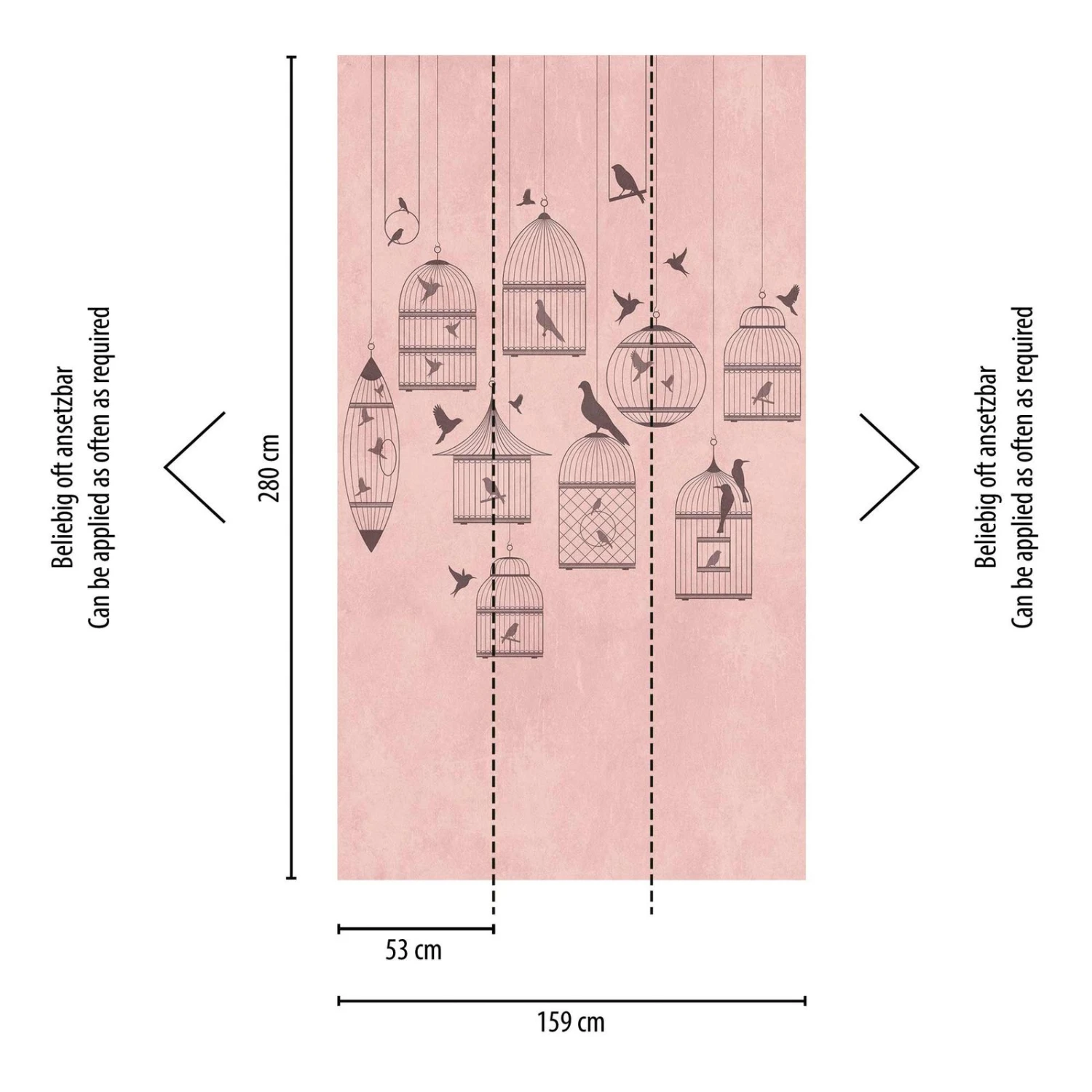 Digitaldruck mit Vogel-Käfigen in rosa, grau – 38296-1 | 382961