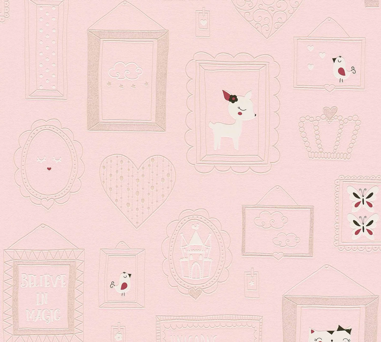 Kindertapete Collage Einhorn Herz rosa weiß Silberglitzer Boys & Girls 6 A.S. Création 36991-2 | 369912