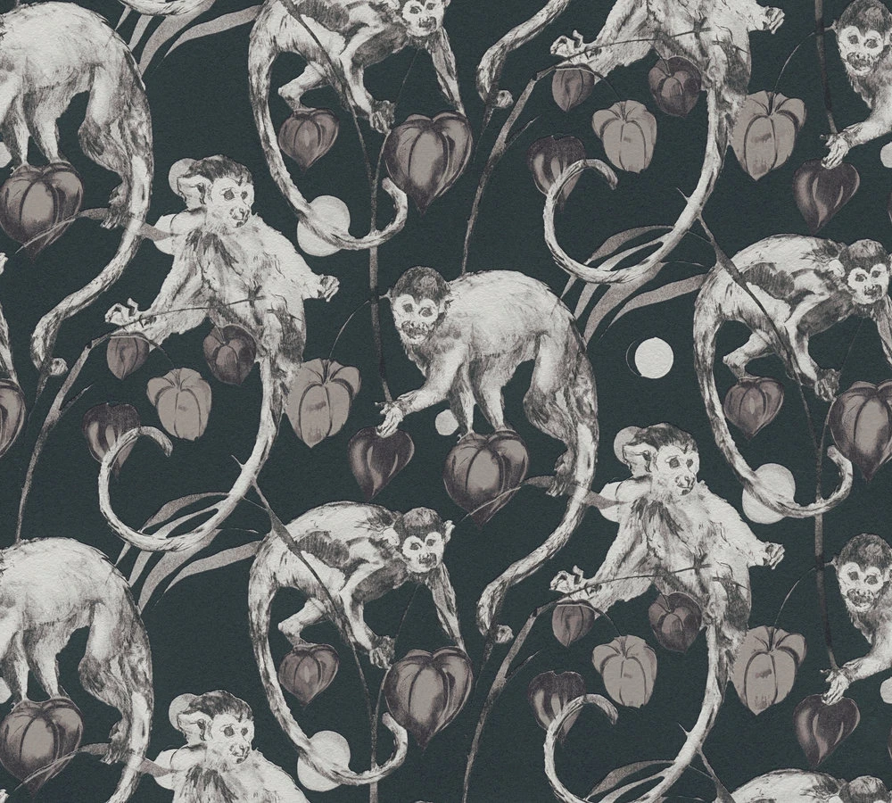 Vliestapete Michalsky Living Dschungel Affen schwarz grau 37982-2 | 379822