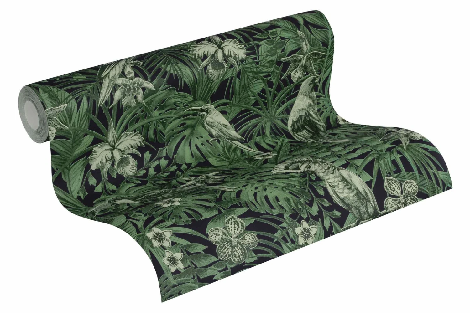 Tapete Vlies Vögel Dschungel schwarz grün AS Creation Greenery 37210-1 | 372101