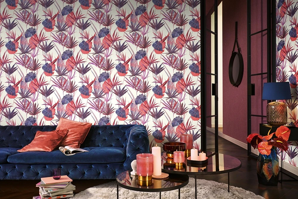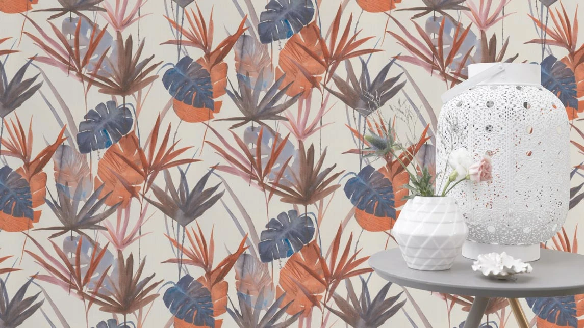 Blätter Vliestapete weiß blau rot Barbara Home Collection II Rasch 536430