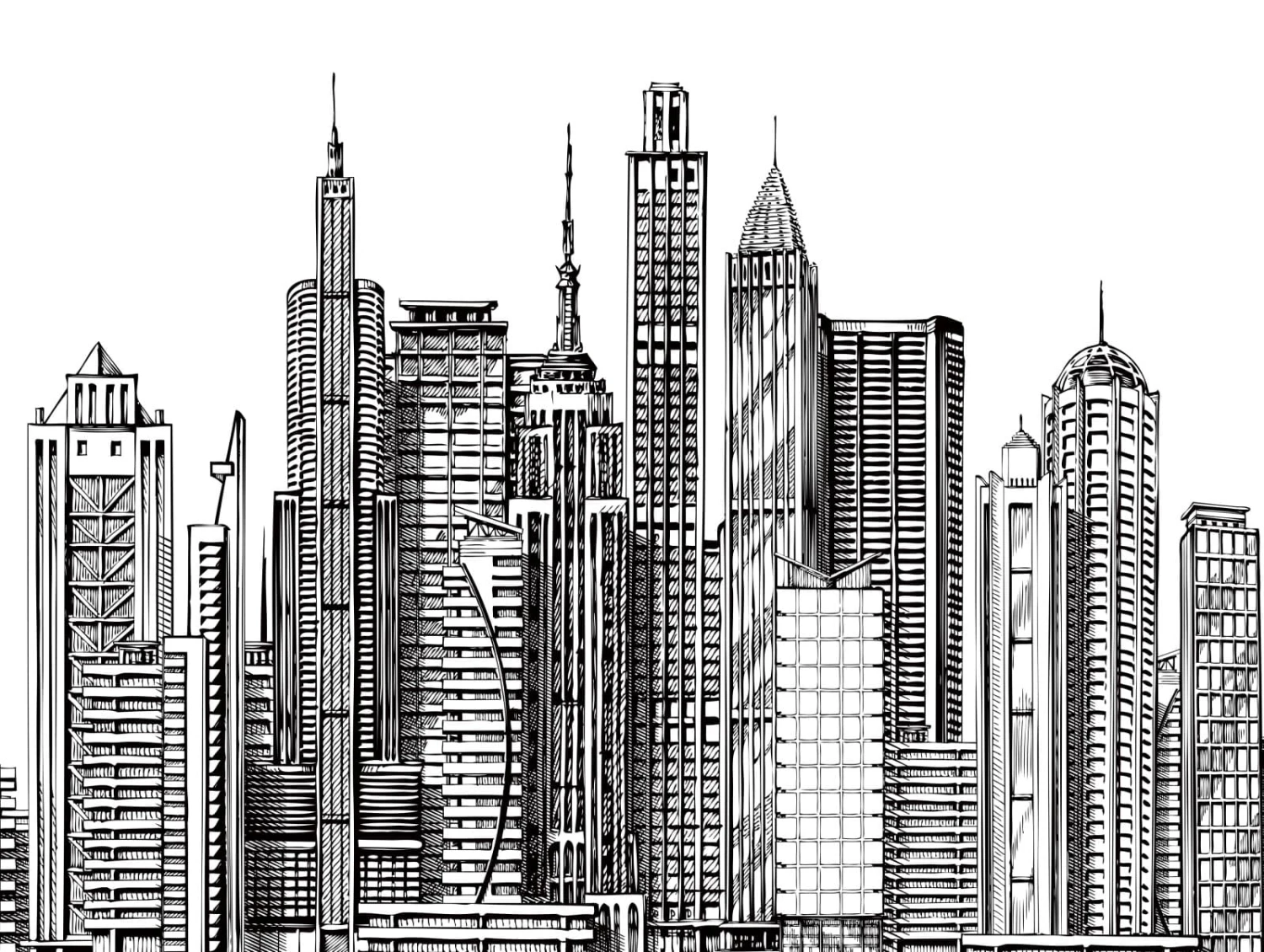 Digitaldruck Skyline Gemalt Weiß Schwarz ML4001