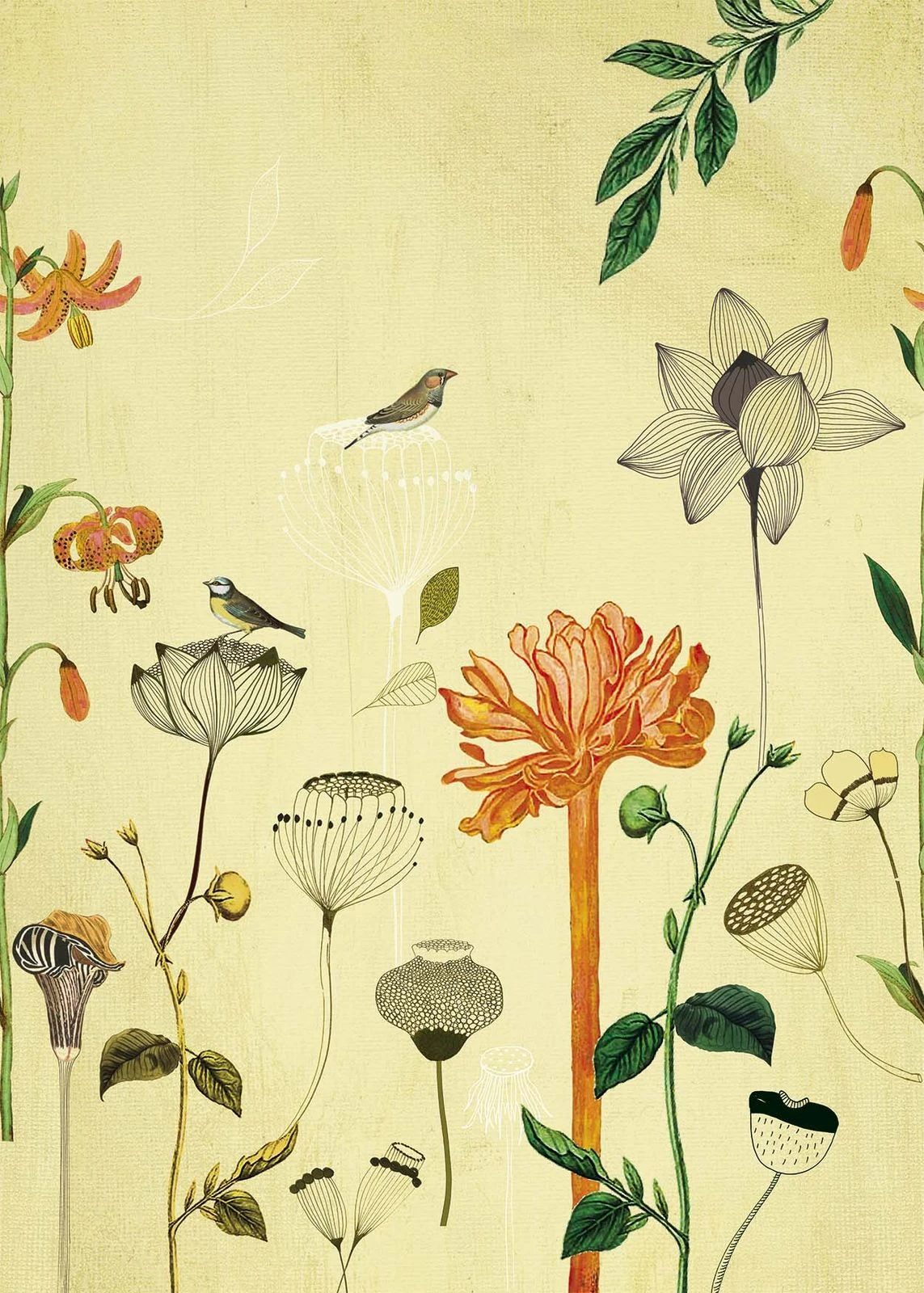 Fototapete Blumen Vogel gelb orange Most Fabulous Onszelf 532036