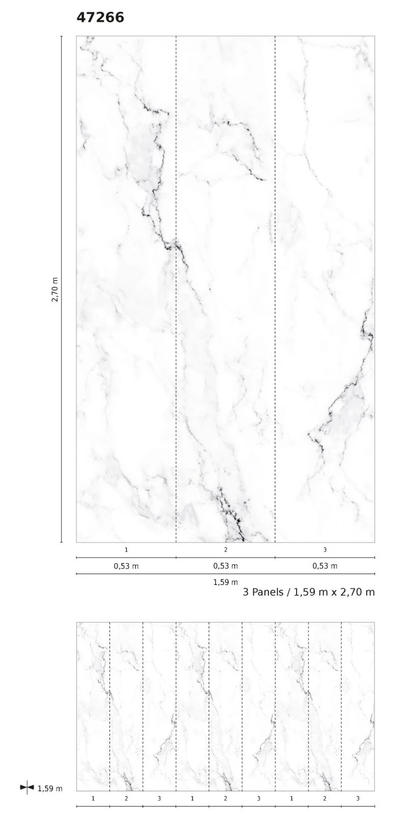 - Größe: 2,70 x 1,59 m (3 Bahnen à 0,53 m)