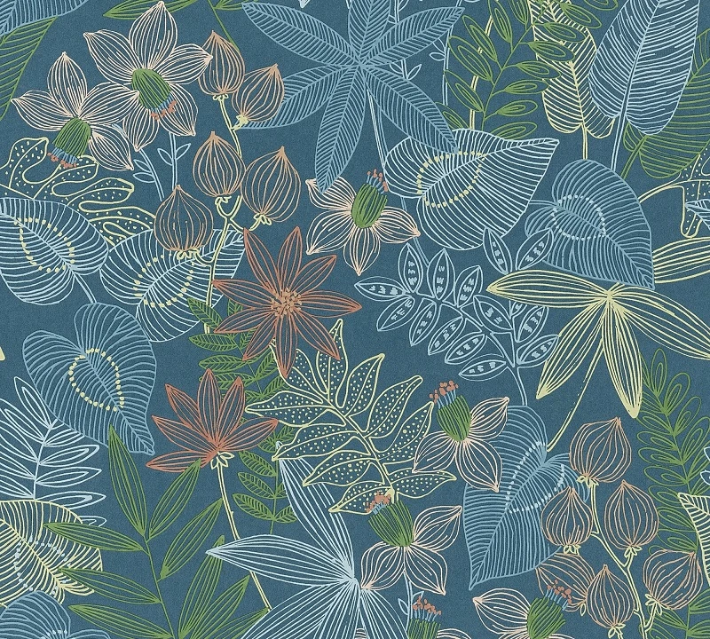 Tapete Selbstklebend Panel Floral Blätter blau bunt Pop Up Panel 3D Livingwalls 368291