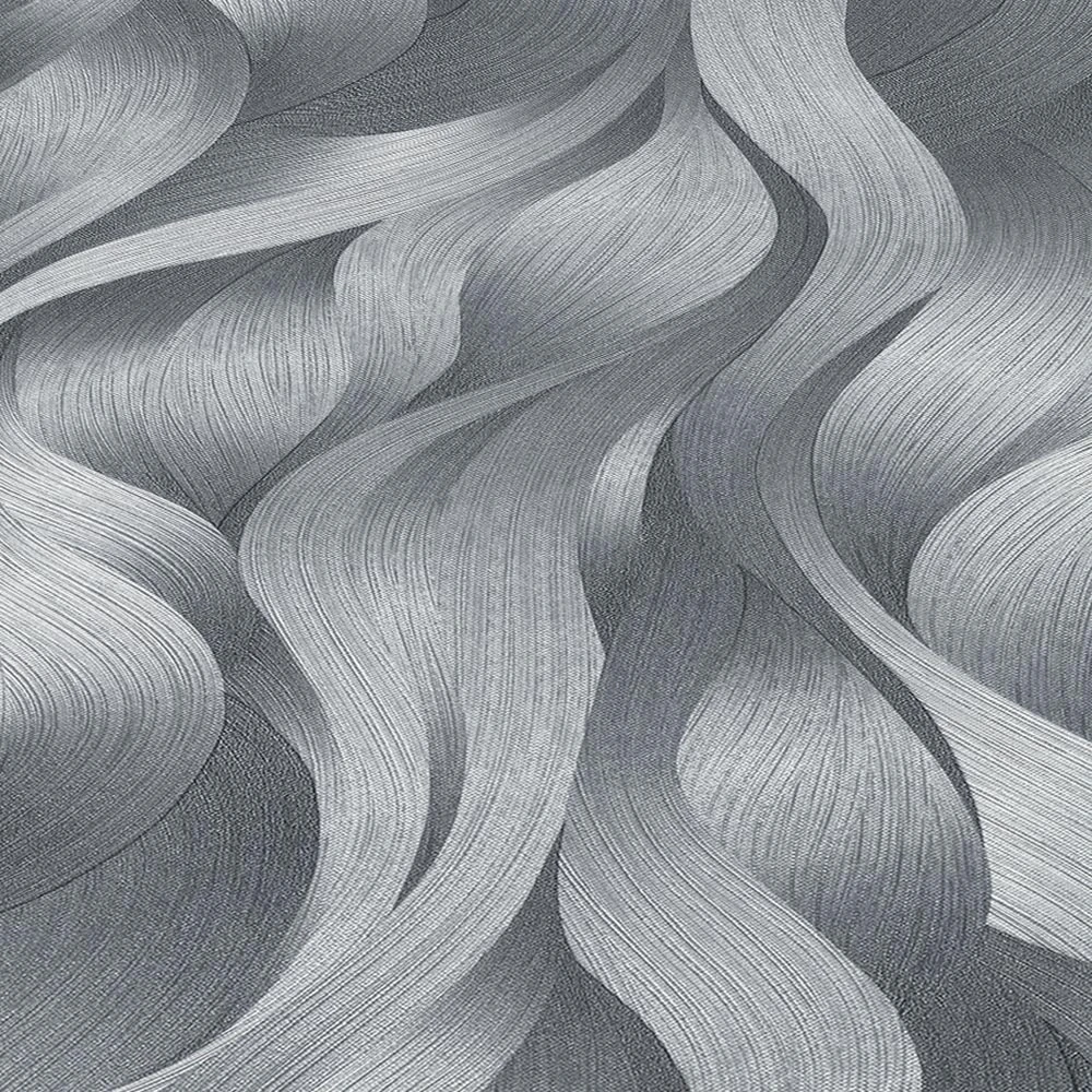 Tapete Vlies ELLE Decoration Wellen Grafik anthrazit silber Glitzer 10204-15 | 1020415