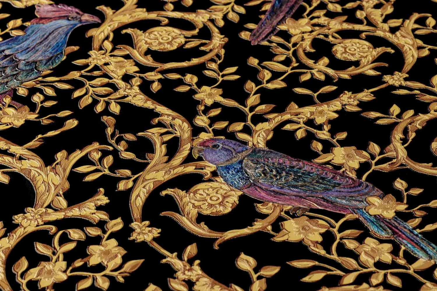 Versace Home IV Vinyltapete Barock Papageien schwarz gold bunt Metallic 370531 | 37053-1
